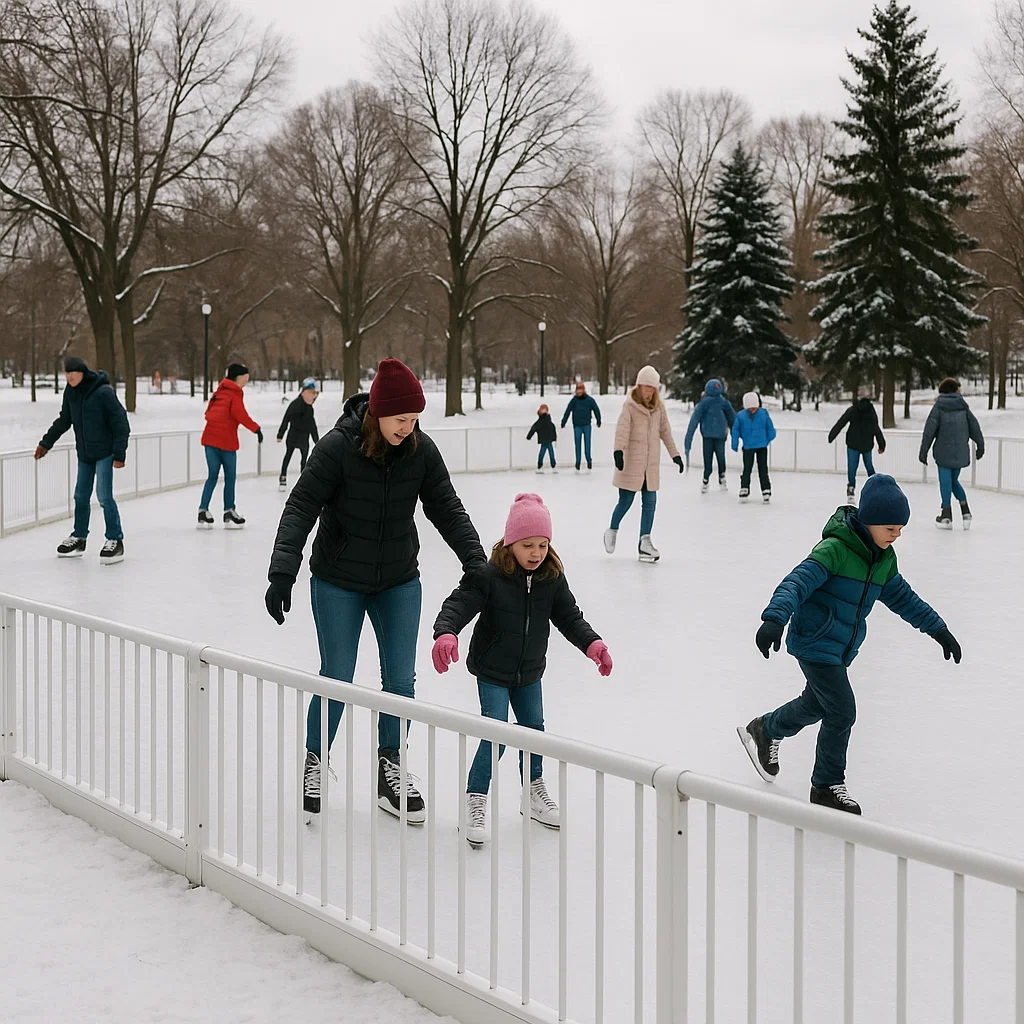Most portable skating rink rentals include the rink panels, perimeter fencing, surface prep, and basic equipment. Exact items vary by package.