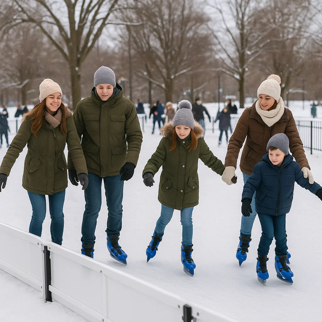 Most portable skating rink rentals include the rink panels, perimeter fencing, surface prep, and basic equipment. Exact items vary by package.